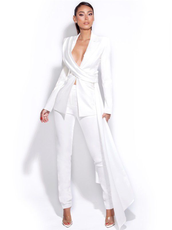 Vandra Draping Blazer Jacket and the Vayla White Skinny Fit Crepe Trousers.